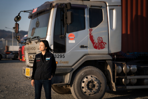 부산의 화물 노동자 김지나 씨는 ‘추레라’를 몰고 수출입 컨테이너를 나른다. 황지현 포토그래퍼 제공