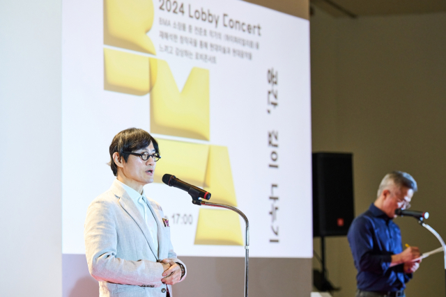 지난 7일 오후 5시 BMA 본관 2층 ‘2024 로비 콘서트-공간, 깊이 나누기’ 현장. 비 내리는 궂은 날씨에도 BMA후원회 (사)비마엔 이사장을 맡고 있는 박종호 센텀종합병원 이사장, 부산메세나협회 화승코퍼레이션 현지호 부회장, 시민 관람객 등 100여 명이 모였다. 예정에 없던 박형준 부산시장도 자리해 무게감을 더했다. 이들은 바이올린과 비올라, 첼로, 콘트라베이스, 아쟁이 따로 또 같이 연주하는 현대 창작곡을 들으며 시립미술관의 마지막 모습을 간직하게 됐다.