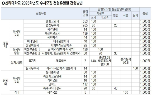 신라대, 전형 간 복수 지원·교차 지원 가능
