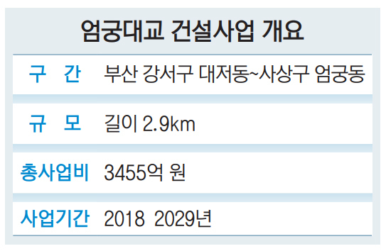 부산시는 이번 주 환경청에 엄궁대교 건설 사업 소규모 환경영향평가서를 제출할 계획이라고 8일 밝혔다. 엄궁대교는 부산 강서구 대저동과 사상구 엄궁동을 잇는 길이 2.9km 교량으로 사업비 3455억 원이 투입된다. 2018년 예비타당성조사를 통과하고 2021년 환경청의 소규모 환경영향평가 절차에 들어갔지만, 아직 환경영향평가 문턱을 넘지 못하고 있다. 가장 최근 이뤄졌던 지난 4월 소규모 환경영향평가에서는 보완 요청이 내려졌다.