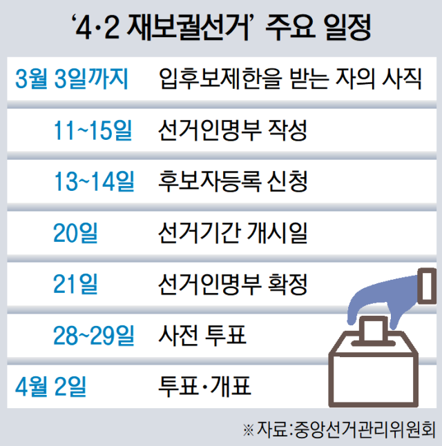 한편, 부산시교육감의 재선거는 선거 일정 변동이 없을 경우, 후보자 등록은 다음달 13일부터 14일까지 진행된다. 사전 투표는 오는 3월 28일부터 29일 이틀간 오전 9시부터 오후 6시까지 치러진다.