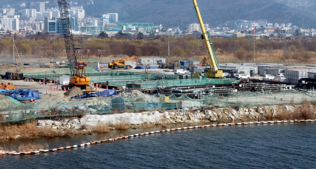 부전마산복선전철 피난터널 2곳 건설을 두고 국토부와 사업자가 갈등을 빚고 있다. 사진은 공사 중 붕괴 사고가 발생했던 사상구 삼락생태공원 공사 현장. 정종회 기자 jjh@