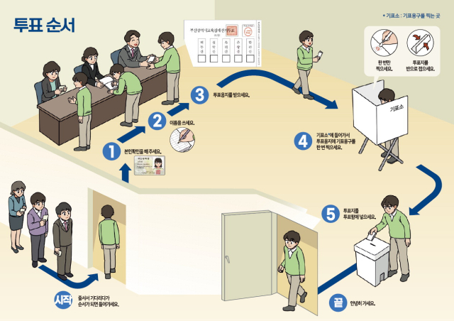 먼저 모든 투표소에는 휠체어 출입이 가능한 대형 기표대가 설치된다. 여기에는 높이 조절 기표판도 부착돼 있다. 투표소 출입구에 단차가 있을 경우 임시 경사로가 놓인다. 이동이 어려운 유권자를 위한 차량도 지원된다. 직접 투표소에 가기를 희망하는 중증장애인은 휠체어 리프트 차량 ‘두리발’을 지원받을 수 있다. 장애인·어르신·임산부 등 거동이 불편한 선거인은 관할 구·군 선관위에 전화로 신청하면 장애인 단체와 연계해 차량을 지원한다.