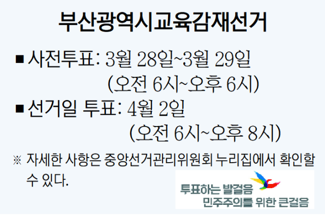 4·2 부산시교육감 재선거가 일주일 앞으로 다가왔다. 부산시선거관리위원회는 공정한 선거를 위해 투·개표 절차를 꼼꼼히 준비하고, 장애인·고령층 등 사회적 약자를 위한 편의 제공도 확대한다.