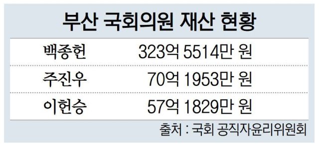 부산 국회의원 재산 증가 1위 정연욱… 최고 자산가는 백종헌
