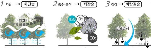 ‘공기정화 도시숲’은 나뭇잎·가지·줄기의 기공을 통해 공기 중의 유해 물질을 흡착·흡수하는 나무의 특성을 이용해 대기 정화를 목적으로 도시생활권에 조성하는 숲을 뜻한다.