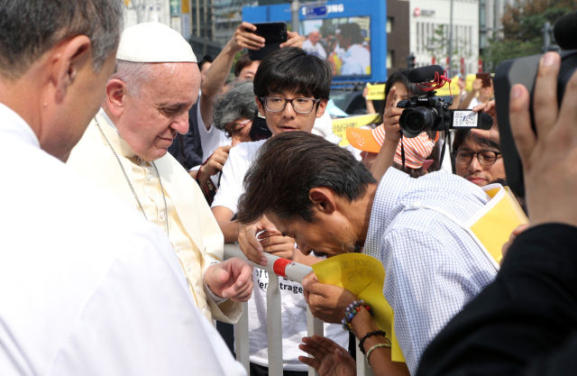한국과의 인연도 각별하다. 즉위 다음 해인 2014년 8월 제6회 가톨릭 아시아청년대회 및 윤지충 바오로 등 124위 시복식 집전을 위해 닷새 일정으로 한국을 방문했다. 당시 ‘이웃집 할아버지’처럼 소탈하고 자애로운 모습이 한국인들에게 깊은 울림을 줬다. 역대 한국인 추기경 중 절반을 프란치스코 교황이 임명했고 파격 인사로 애정을 나타냈다.
