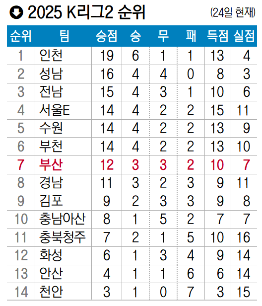 부산은 오는 27일 오후 부산 구덕운동장에서 화성FC와 9라운드 경기를 펼친다. 현재 리그 7위(3승 3무 2패·승점 12)에 올라 있는 부산이 상위권 진입을 위해서는 화성(12위·1승 3무 4패·승점 6)을 상대로 반드시 승점을 챙겨야 한다. 무엇보다 홈에서의 부진을 씻어내기 위해서라도 승리가 필요하다.