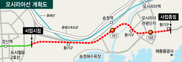 8일 부산시에 따르면 민간투자사업으로 추진 중인 오시리아선에 대한 KDI 민자투자사업적격성조사 결과가 약 2년 동안 나오지 않고 있다. 오시리아선은 부산도시철도 2호선 종점인 해운대구 장산역에서 기장군 오시리아 관광단지까지 4.13km를 연장하는 사업이다. 2022년 3월 극동건설이 최초로 사업 추진 의향서를 냈으며 부산시는 이를 토대로 KDI 공공투자관리센터(PIMAC)에 민자 적격성 조사를 의뢰했다. 이를 통과해야 민투사업 진행이 가능하다.