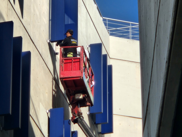 구조물은 3루 측 매점 위 구단 사무실 창문 외벽 약 17.5m 높이에 고정돼 있다가 알 수 없는 이유로 추락했다.