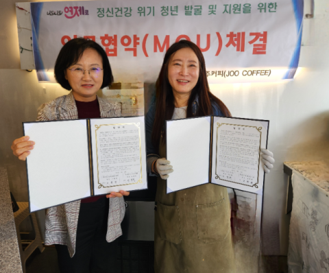 부산 연제구 연산5동(동장 노윤경)은 13일 지역 내 정신건강 위기 청년의 조기 발굴 및 지원 강화를 위해 카페 ‘주커피(대표 구영희)’와 업무협약(MOU)을 체결했다.