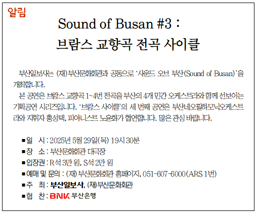 [알림] Sound of Busan #3 : 브람스 교향곡 전곡 사이클