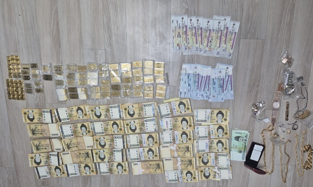 상가를 판 뒤 양도세를 내지 않은 체납자로부터 압류한 현금과 귀금속.