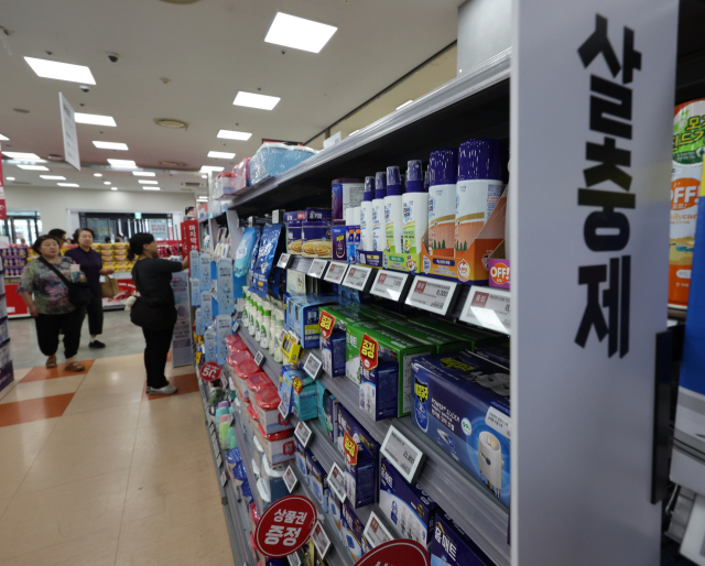 서울 등 수도권 일부 지역을 중심으로 일명 '러브버그'로 불리는 붉은등우단털파리가 집단 출몰하고 있는 가운데 2일 서울 시내 한 대형마트에 방충용품이 진열돼있다. 연합뉴스