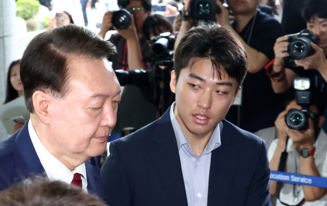 윤석열 전 대통령이 5일 내란 특검의 2차 조사를 받기 위해 조은석 특별검사팀 사무실이 있는 서울 서초구 서울고검에 출석하고 있다. 연합뉴스