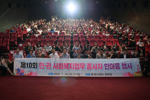 부산 동구(구청장 김진홍)는 7월 30일 롯데시네마 광복점에서 관내 20개 민간 사회복지시설 및 공공기관의 사회복지 종사자 220여 명을 초청해 ‘제10회 민·관 사회복지 종사자 한마음 행사’를 개최했다고 밝혔다.