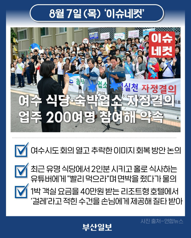 '불친절·비위생 논란' 여수 식당·숙박업소 자정결의…업주 200여명 참여 [이슈네컷]