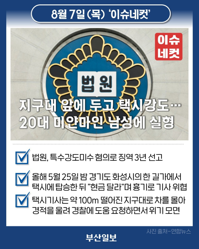 3. 지구대 앞에 두고 택시강도…20대 미얀마인 남성에 실형