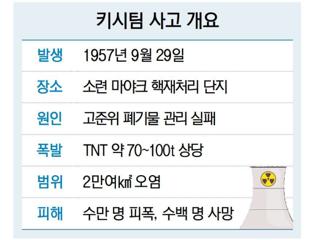 소련 체르노빌(1986년), 일본 후쿠시마(2011년) 원전 사고를 모르는 사람은 없다. 원자로 붕괴로 이어진 미국 스리마일(1979년) 사고도 비교적 유명하다. 하지만 ‘키시팀 사고’를 기억하는 이는 드물다. 수만 명이 피폭된 것으로 추정되는 사고였고, 원인은 방사성 폐기물 관리 부실이었다.