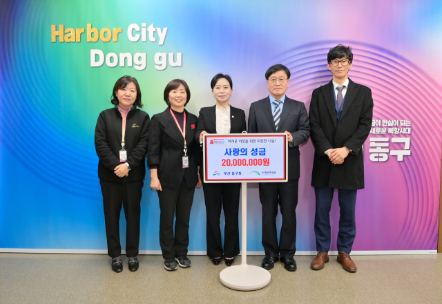 (주)수정산투자(대표 김호윤)는 지난 4일 부산 동구청을 방문해 관내 저소득 취약계층 난방 지원을 위한 이웃돕기 성금 2000만 원을 기탁했다. 성금은 부산사회복지공동모금회를 통해 동구 지역 내 어려운 이웃들의 겨울 난방비로 사용될 예정이다.