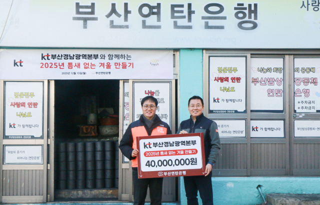 KT부산경남광역본부(정재욱 전무)는 부산 서구 아미동에 위치한 부산연탄은행 연탄창고에서 에너지 취약계층의 겨울나기 지원을 위한 후원기금 4000만 원을 전달했다고 16일 밝혔다.
