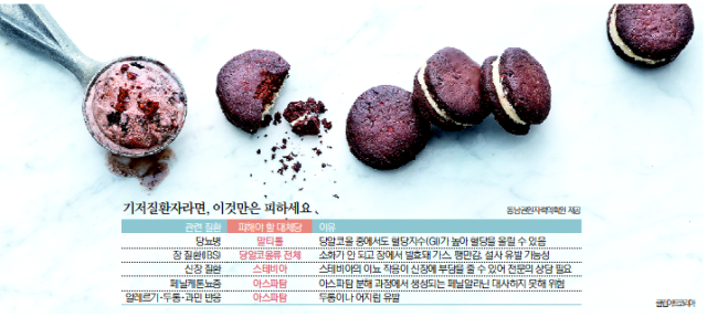 당알코올에 속하는 말티톨과 에리스리톨, 자일리톨은 설탕과 비슷한 단맛을 내면서도 칼로리는 낮은 편이다. 하지만 소장에서 완전히 흡수되지 않는 특성 때문에 사람에 따라 복부 팽만이나 설사 같은 불편감을 느낄 수 있다. 특히 말티톨은 다른 대체당과 달리 혈당을 완만하게 올리고, 당알코올 중에서도 혈당지수가 높아 당뇨병 환자는 피해야 한다. 자일리톨은 충치 예방에 좋으나 강아지에게는 치명적인 독성이 있어 반려견이 먹지 않도록 주의해야 한다. 동남권원자력의학원 가정의학과 최교주 주임과장은 “장 질환 환자의 경우 당알코올류 전체가 소화가 안 되고 장에서 발효돼 가스, 팽만감, 설사를 유발하므로 섭취를 피하는 것이 좋다”고 조언했다.