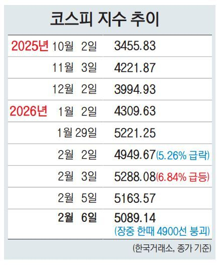 국내 증시가 또 한 번 이른바 ‘인공지능(AI) 버블론’으로 크게 흔들리고 있다. 미국 빅테크의 과도한 AI 투자에 따른 수익성 우려가 부각되며 미 증시가 흔들리자 그 여파가 국내 증시로 전이된 것이다. 지난해 하반기 이후 이어진 유례없는 강한 상승장을 감안하면 조정 국면 자체가 자연스러운 것이라는 해석도 나온다. 다만 문제는 하락 자체가 아니라, 하루는 급락하고 다음 날은 곧바로 급등하는 이른바 ‘극심한 널뛰기 장세’가 반복되며 시장의 방향성을 아예 가늠하기 어려워졌다는 점이다.