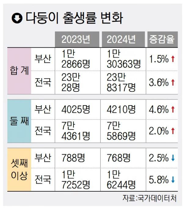 부산 출생률 반등 이끈 ‘다둥이 가구’