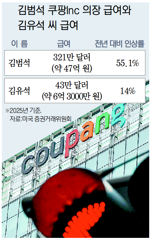 김범석 쿠팡Inc 의장 동일인(총수) 지정의 결정적 요인은 김 의장 친동생 김유석 씨의 경영 참여 여부였다. 동생 김 씨는 부사장 급으로 약 6억 원의 보수를 받으며 쿠팡 경영에 사실상 참여했다. 이런 가운데 개인정보 유출 사고로 회사에 손실을 끼쳤음에도 김 의장이 지난해 보수를 대폭 인상한 것으로 나타나 책임 경영 실종이라는 비판이 나온다.