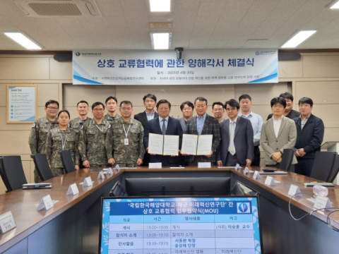 국립한국해양대학교 해양과학기술융합대학(학장 서동환)은 ‘국방 연구개발 기술 기획 및 연구개발 협력’을 위해 해군 미래혁신연구단과 협약을 체결했다고 밝혔다.