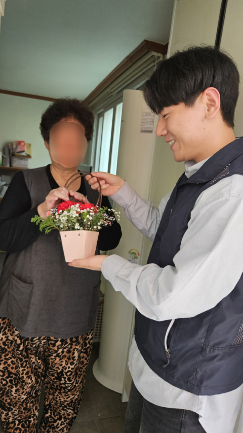 또한 동구종합사회복지관 직원들이 외출이 어려운 어르신 가정 10세대에 방문해 카네이션 꽃다발과 함께 사랑의 마음을 전달했다.